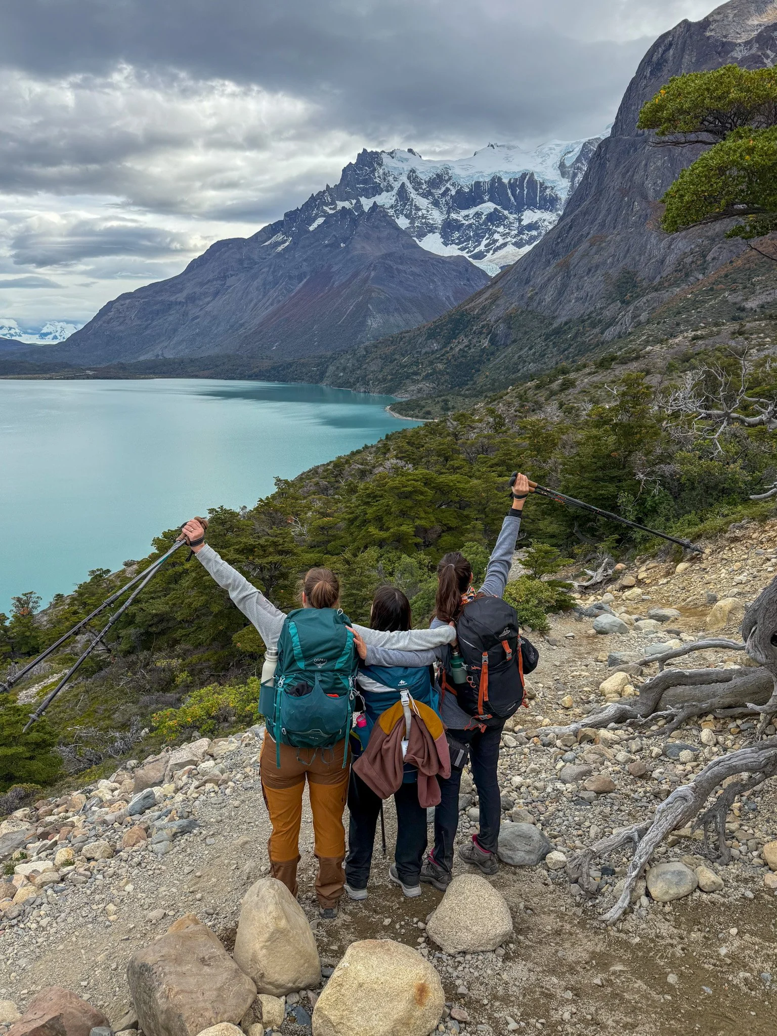 Disfrutando de las vistas y abiertas a que en la región de Magallanes el tiempo es muy impredecible, por lo que hay que tener la apertura mental de estar flexible a lo que vaya pasar y conscientizarnos que eso es parte de estar en La Patagonia y de la experiencia.