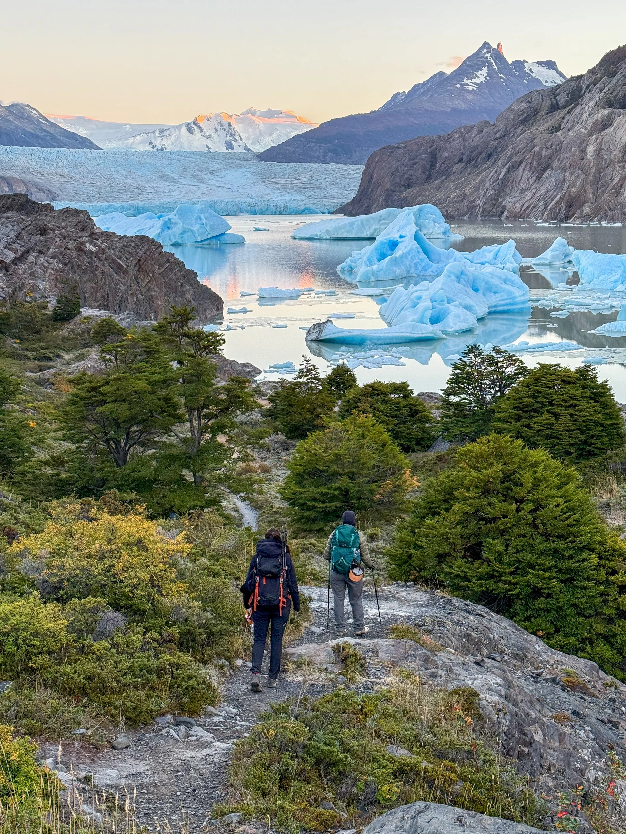 Acá nos tomamos un catamaran que nos acerca al Glaciar Grey para volver lentamente a Puerto Natales. Vamos muy cerquita del glaciar, una de las experiencias más lindas de todo el circuito.